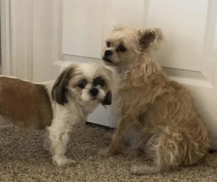 They want the door open, but it must remain closed until this evening. Since neither can reach the doorknob, they must rely on the saddest little faces they can muster and long, meaningful looks at the door.